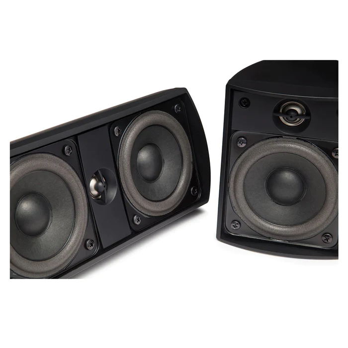 Their compact design, textured cabinet finish and elegant curved grills let the Cinema 5 speakers disappear in the room. Recessed binding posts allow placement nearly flush with wall surfaces for a clean look. Just add a 5.1-channel A/V receiver and get ready for the show!