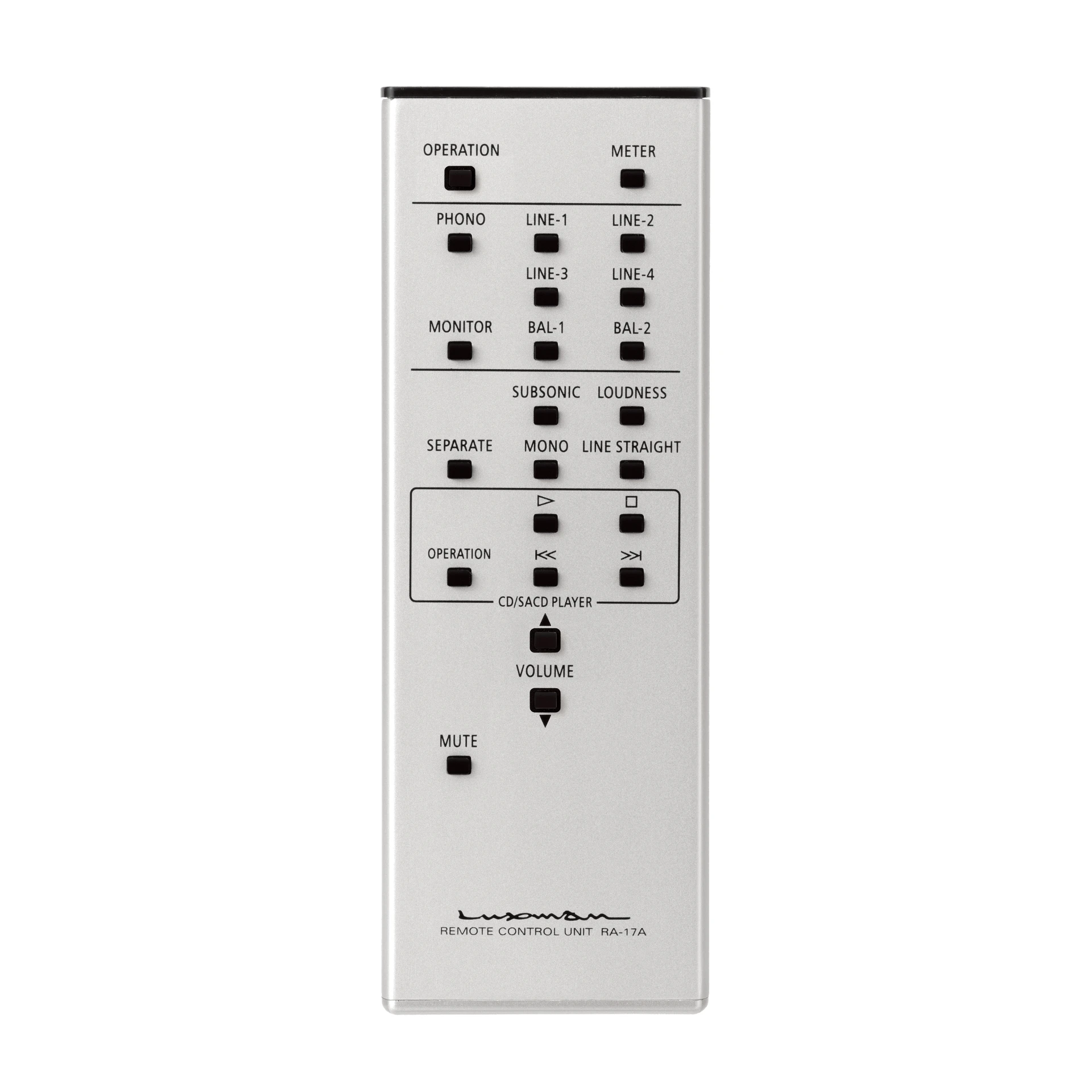 | Accessories | Remote control (RA-17A) Power cable |