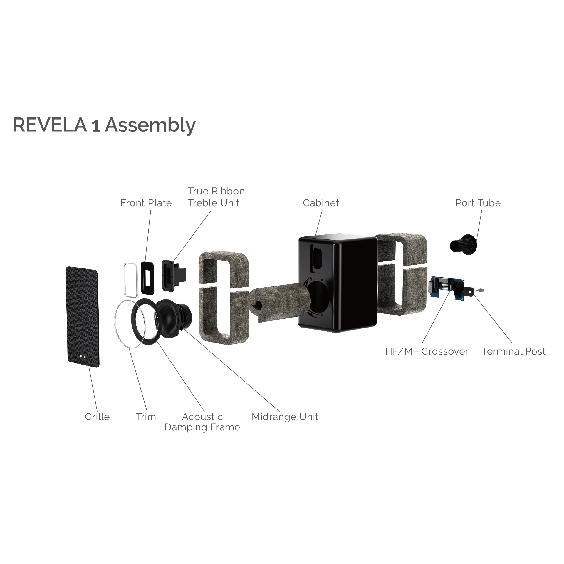 The QUAD REVELA 1 True Ribbon is unlike conventional dome treble units where the voice coil ‘motor’ is attached separately to the diaphragm; the Revela True RibbonTM is attached to both the diaphragm and the motor system.